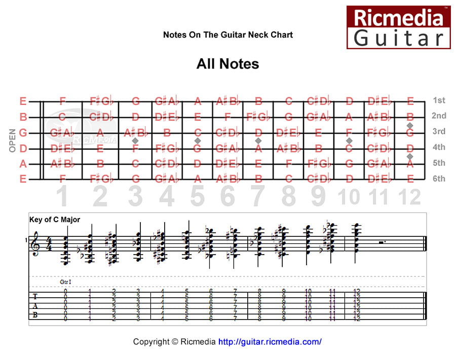 All notes on guitar neck