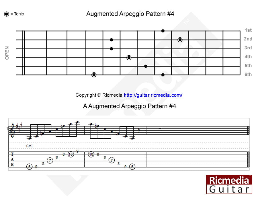 A Augmented arpeggio pattern #4 https://www.ricguitar.com/wp-content/uploads/augmented-arpeggio/a-augmented-arpeggio-pattern-4.mp3