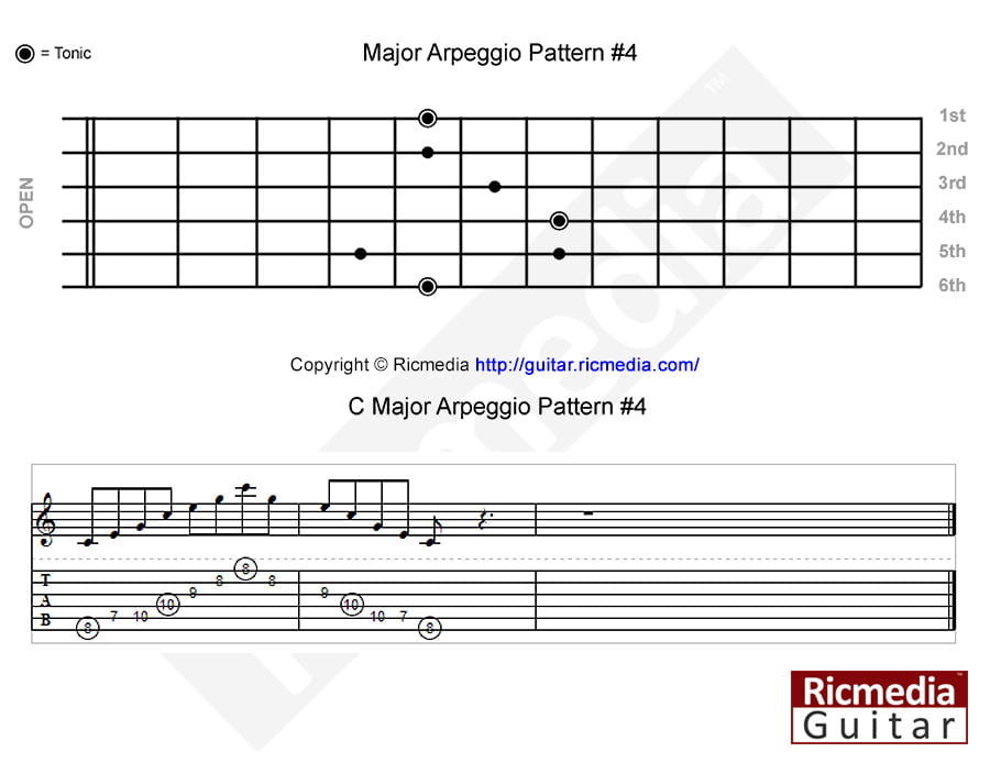 C Major arpeggio pattern #4 https://www.ricguitar.com/wp-content/uploads/major-arpeggio/c-major-arpeggio-pattern-4.mp3