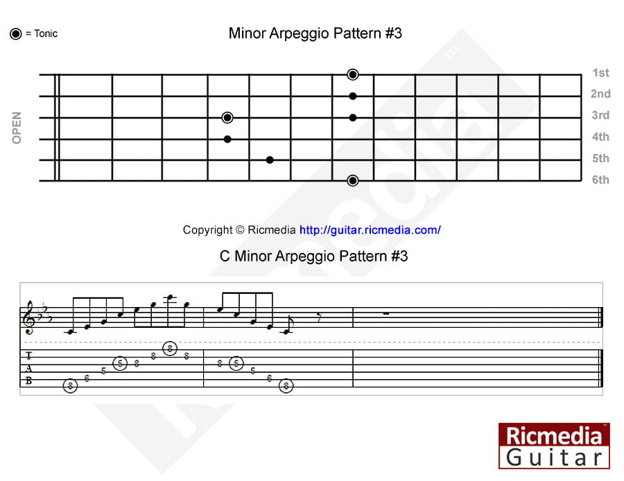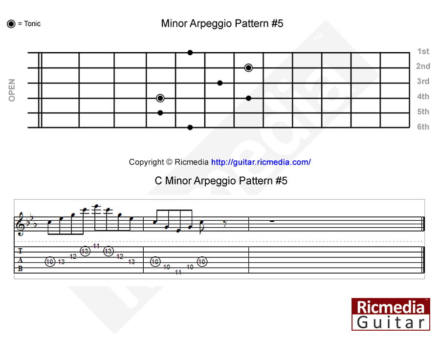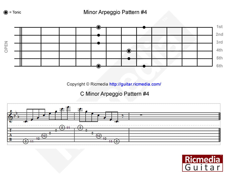 C Minor arpeggio pattern #4 https://www.ricguitar.com/wp-content/uploads/minor-arpeggio/c-minor-arpeggio-pattern-4.mp3