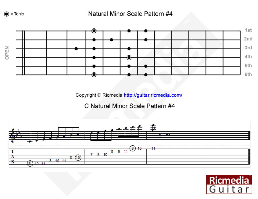 C Natural minor scale pattern #4 https://www.ricguitar.com/wp-content/uploads/natural-minor-scale/c-natural-minor-scale-pattern-4.mp3